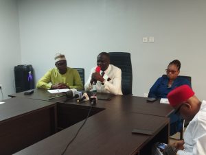 Journalists at the media briefing of the Commissioner, Ministry of Information and Communication Strategy, Prince Kassim Afuegbua in Benin, on Wednesday, 8 April, 2026. Photo Credit: hilltopnationale.com